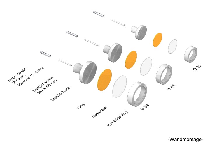 10 finishes with endless possibilities - bases and threads also interchangeable - special colours and sizes available on request.